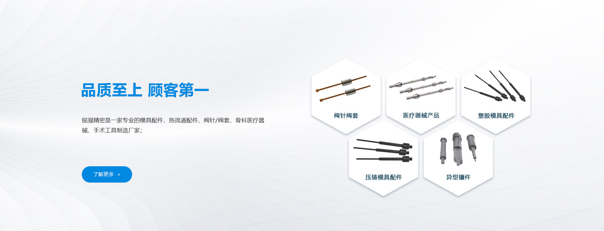 銘強(qiáng)精密工業(yè)(蘇州)有限公司成立于2010年6月,銘威達(dá)精密科技有限公司成立于2006年6月。公司占地面積3000平方米,位于江蘇省昆山市,是一家模具配件和熱流道配件閥針/閥套,骨科醫(yī)療器械手術(shù)工具制造廠家。